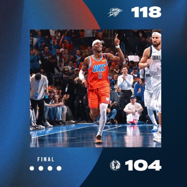 北京时间12月11日,NBA杯赛西部半决赛,雷霆118-104力克独行侠晋级西部决赛。 雷霆(19-6):亚历山大39分8篮板5助攻3抢断、杰伦-威廉姆斯18分7篮板4助攻、多特11分6篮板、华莱士11分8篮板4助攻、哈滕10分13篮板3助攻、卡鲁索6分4篮板4助攻 独行侠(16-9):马绍尔19分4篮板、克雷-汤普森19分4篮板、欧文17分5助攻、东契奇16分11篮板5助攻 首节比赛,独行侠率先发力,亚历山大连续得分率领雷霆反超,雷霆领先独行侠8分结束第一节。第二节,独行侠角色球员发力,将分...